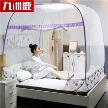 九洲鹿 蚊帐家纺 免安装方顶蒙古包三开门蚊帐有底拉链钢丝可折叠 雪绒花 紫 1.8米床