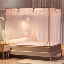 博洋家纺(BEYOND) 床上用品宫廷不锈钢方顶三开门全包优雅坐床式婴儿蚊帐 坐床方顶蚊帐-粉 1.8米床