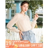 Lagogo拉谷谷秋新款圆领甜美直筒型上衣长袖木耳边泡泡袖雪纺衫女JCSS537A21 浅驼色(S3) 155/S/36
