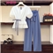 婷慕莎加肥加大码女装显瘦遮肚套装胖妹妹夏装胖女人显瘦款微胖mm200斤时尚洋气胖子女装阔腿裤两件套 套装 大码XXXL