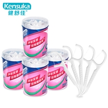 健舒佳 牙线棒 专业洁齿弹韧圆线80支x4筒 清洁齿缝超细牙线剔牙签 优雅款