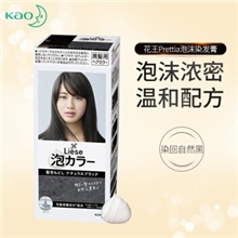 日本进口 花王(KAO)Prettia泡沫染发剂 黑色(1液34ml 2液66ml 护发素8g )植物泡泡不伤发