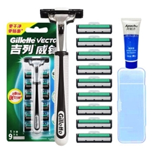 吉列(Gillette)威锋双层刀片手动剃须刀刮胡刀手动吉利老式剃须刀(9刀头+1刀架)收纳盒+须膏