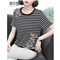 【精选好货】韩可思夏装新款女士条纹T恤女短袖韩版时尚宽松半袖百搭绣花上衣棉大码体桖夏 条纹 请拍正确尺码