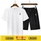 BABIBOY 夏季新款男士运动套装短裤男纯棉T恤男纯色圆领T恤男 白色T恤+黑裤 XL