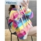依格莉中学生少女秋天流行卫衣女春秋新款ins超火高中初中生宽松中长款彩虹条纹连帽大码长袖卫衣 浅色 M