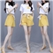 幂缇莎短裤女两件套夏坠感阔腿中裤t恤女套装减龄抹茶绿休闲温柔风小个子 黄色 L