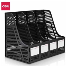 得力(deli) 9848 四联镂空桌面文件框 办公室桌面多层资料架子四栏带标签稳固文件栏 黑色