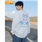 小棕猴 长袖圆领卫衣男秋季宽松白色炫彩反光潮牌小熊新款长袖T恤男宽松潮ins港风情侣卫衣男 G3045本白色 L