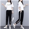 睡妍 大码女装套装女夏夏季新品宽松显瘦加肥加大码胖mm短袖T恤九分裤休闲运动套装两件套女夏 白色 XXL(120-140左右)