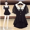芷依丽 大码时尚套装女夏季新款韩版宽松显瘦胖MM短袖T恤女休闲阔腿短裤洋气减龄遮肚子两件套 黑色 L(建议96-115斤)