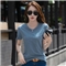 红粉宣言夏季新款百搭宽松竹节棉大码T恤女短袖 蓝色 L