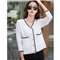 【精选好货】韩可思短外套女秋季新款韩版长袖宽松小香风上衣女撞色显瘦白色冰丝针织开衫 白色 请拍正确尺码