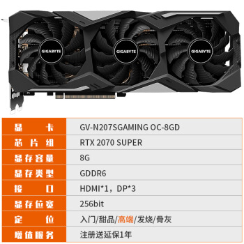 技嘉(GIGABYTE)GeForce RTX 2070 SUPER GAMING OC 3X 8G 256bit GDDR6 使命召唤COD16吃鸡电竞游戏显卡 |
