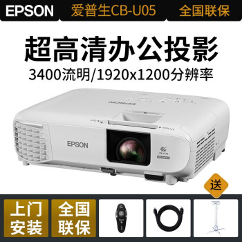 爱普生(EPSON)投影仪 高清家用 办公便携投影机 CB-U05(3400流明 超高清) 标配+吊架+英微100英寸幕布+安装 |