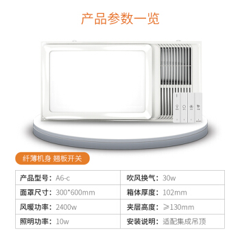 奥普(AUPU)浴霸 A6-c多功能集成吊顶风暖浴霸 LED大面板照明 双色变光 四键翘板开关 |