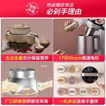 美的(Midea)17500高转速破壁免滤豆浆机容量可调滤网可拆搅拌机可做米糊果汁DJ12B-P401(李现同款) |