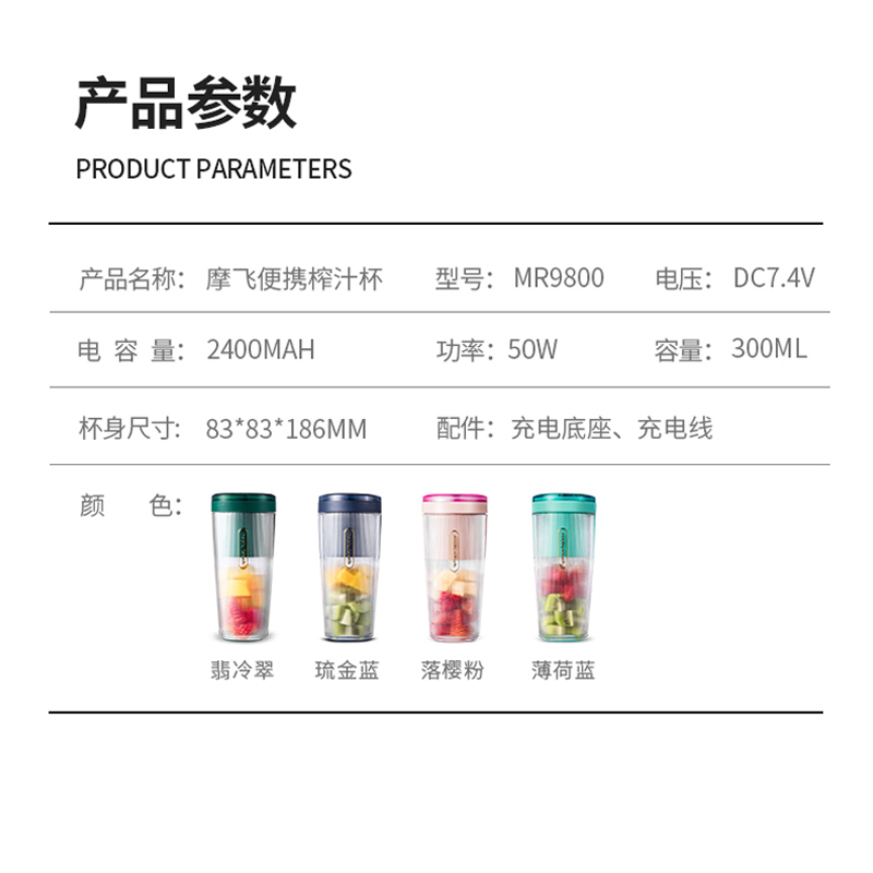 摩飞新品 榨汁杯家用水果迷你小型果汁杯电动便携式炸果汁机无线榨汁机【PCTG/翡冷翠】 |
