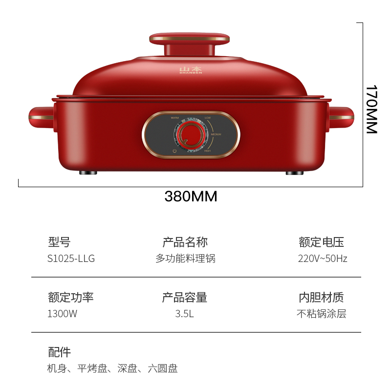 山本多功能料理锅红色【不粘涂层/红色】 |