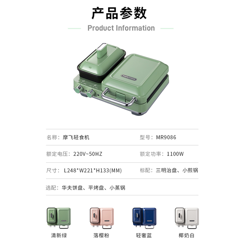 英国摩飞多功能早餐机三明治轻食机小型家用华夫饼机吐司压烤机【不锈钢/颜色】 |