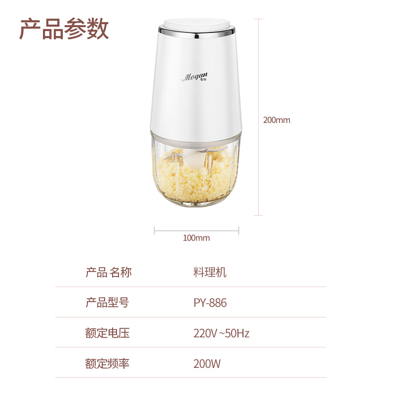 0.3L迷你绞肉机省电快捷蒙得PY-886绞肉机【玻璃/白】 |