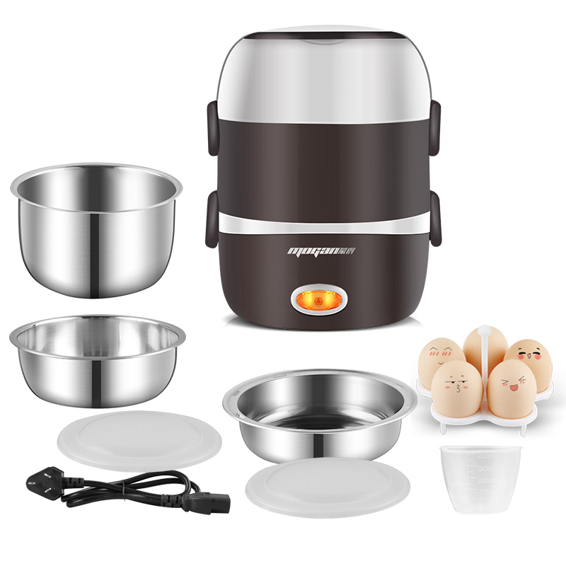 便捷式上蒸下煮电热饭盒【不锈钢/棕色】 |