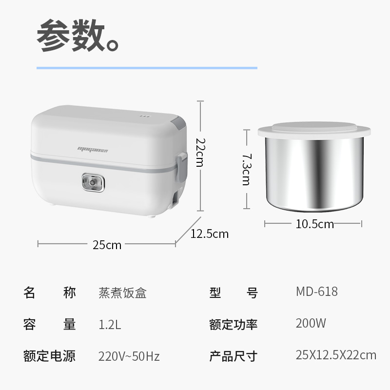 不锈钢内胆防干烧电热饭盒【食品级不锈钢/白色】 |