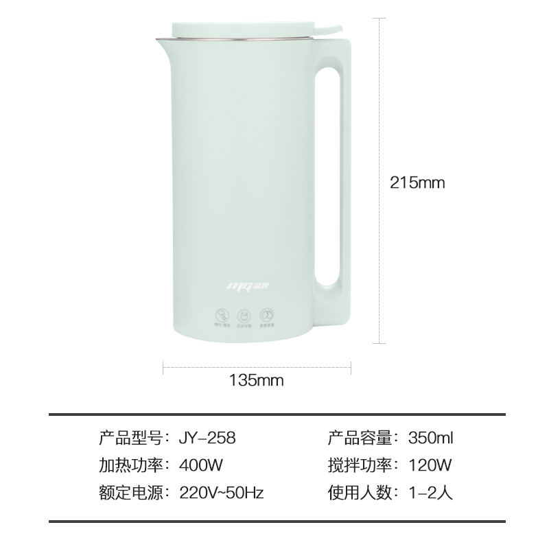 蒙得JY-258豆浆机304不锈钢【内胆304/淡绿色】 |