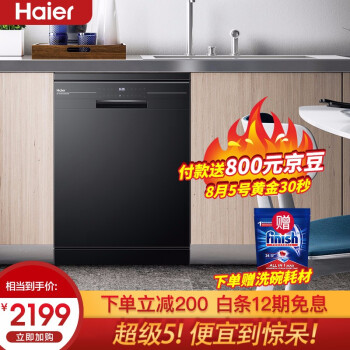 海尔(Haier)13套独立式除菌消毒洗碗机 80℃双微蒸汽智能油污感应烘干 独嵌两用家用洗碗机 EW139166BK |