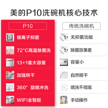 美的(Midea)13套 嵌入式 家用洗碗机 WIFI全智能 自动感应银离子除菌 加强烘干 全自动刷碗机P10 |
