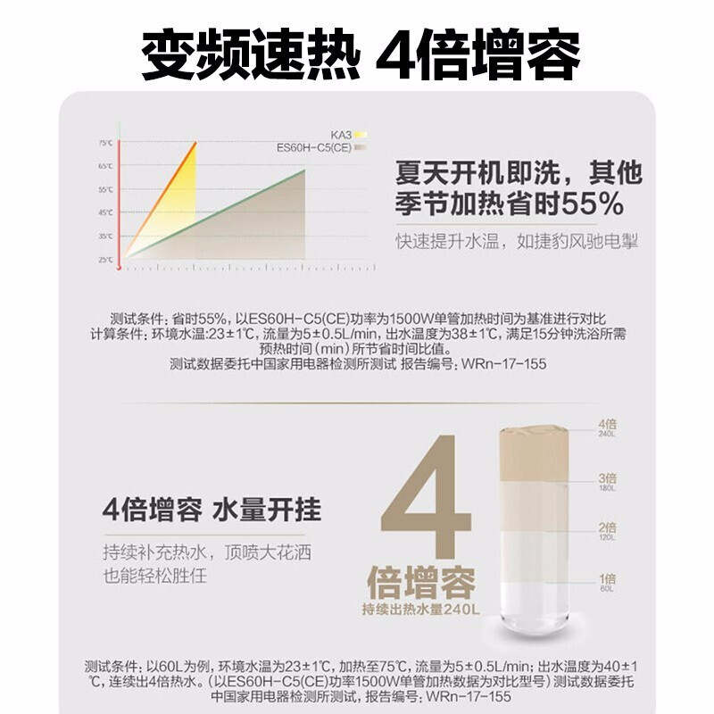 Haier/海尔 ES60H-D7(2U1)热水器电家用60升变频速热卫生间洗澡【不锈钢/金色】 |