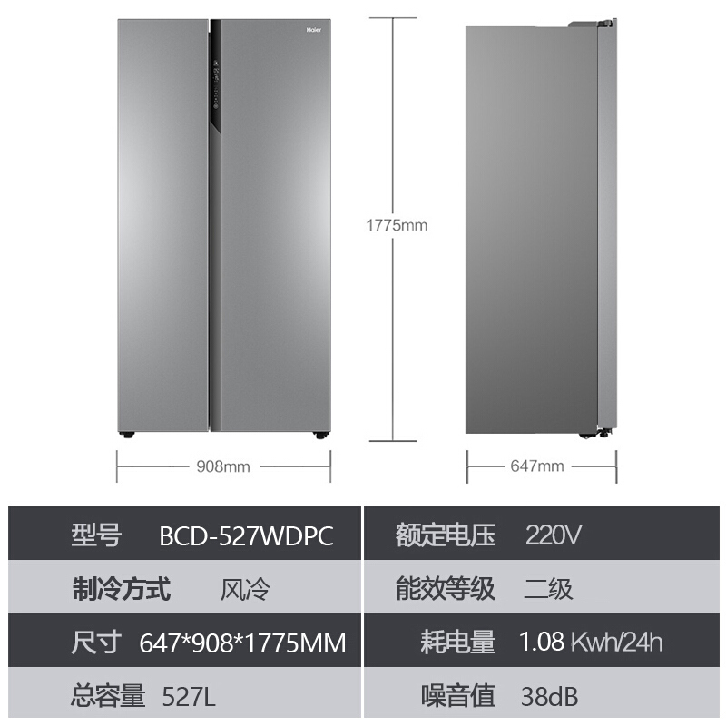 海尔BCD-527WDPC双门对开门变频无霜大容量家用冰箱【 不锈钢/月光银】 |