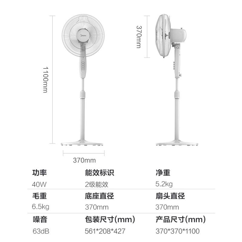 美的立式家用电风扇静音机械三叶落地扇FSA30YD【ABS+电子元件/白】 |