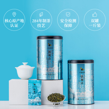 八马茶业 茶叶 乌龙茶 安溪清香型铁观音 双蓝罐装 500g |