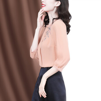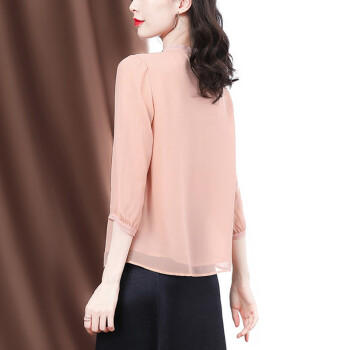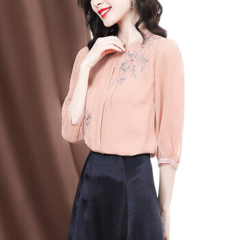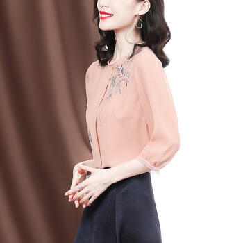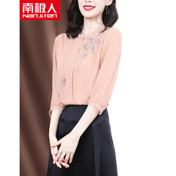 南极人 衬衫女夏季新款女装雪纺小衫韩版时尚气质印花设计感小衫衬衣七分袖圆领上衣潮 N4-GDB405-6756-粉色 M |