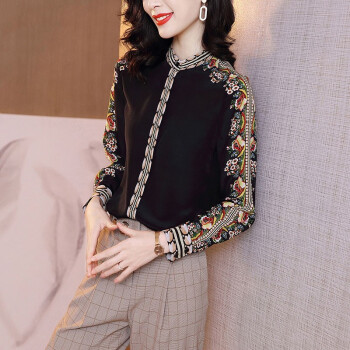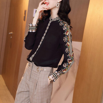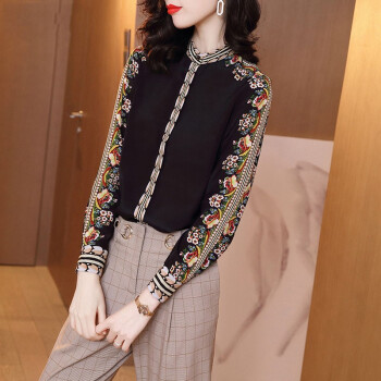 微尚瑶衬衫女秋季新款复古港风印花长袖衬衫女气质优雅设计感小众系扣开衫女上衣7008 黑色 请拍正确尺码 |