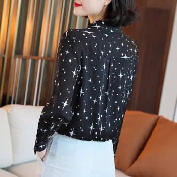 微尚瑶衬衫女秋季新款复古娃娃领长袖星星印花女衬衣潮时尚减龄气质优雅镂空小衫女7000 花色 请拍正确尺码 |