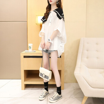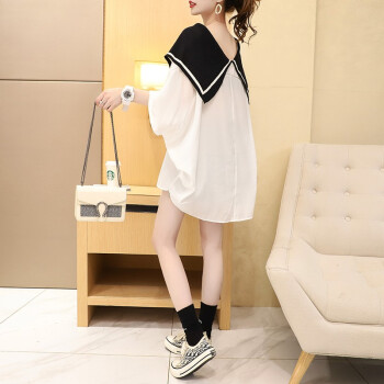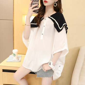 小赖猴娃娃领雪纺衬衫女中长款夏季新款韩版宽松大码洋气减龄上衣薄 白色 均码 |