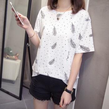 莺飞雪短袖t恤女夏季新款韩版宽松休闲学生大码女装显瘦百搭上衣打底衫女 白色6213 L(建议90-115斤) |