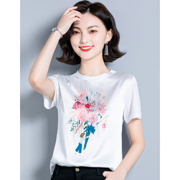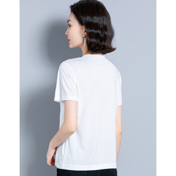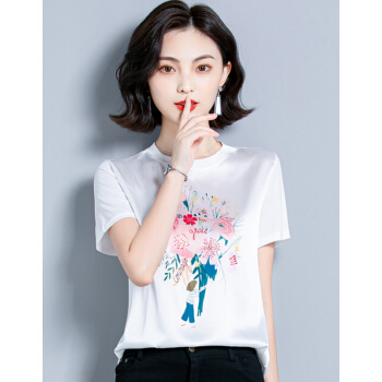 婪澈短袖T恤女女装夏季新款韩版时尚气质圆领印花衣服t恤女显瘦拼接上衣女 白色 请拍正确尺码 |