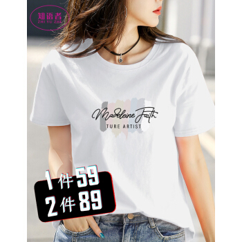 知语者女装短袖t恤女宽松体恤大码显瘦上衣夏季新款百搭韩版印花时尚纯色棉质t桖打底T恤女 圆领白色 L《105-115斤》 |