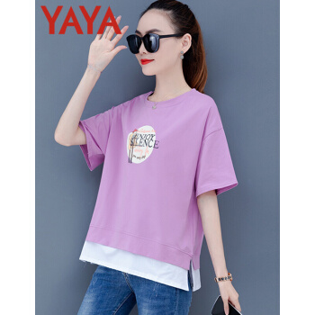 鸭鸭服饰yayaT恤女季韩版新款百搭宽松紫色女装夏大码短袖t恤女短款上衣 香芋紫 请选择正确尺码 |