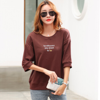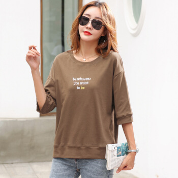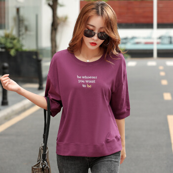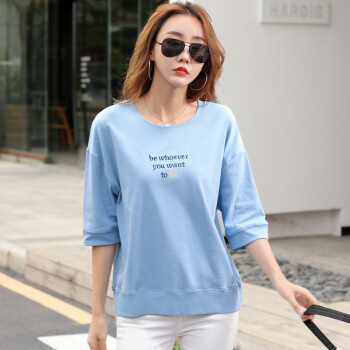 薇妃妙短袖气质t恤女夏季新款时尚宽松显瘦百搭体恤衫 天蓝色 L |