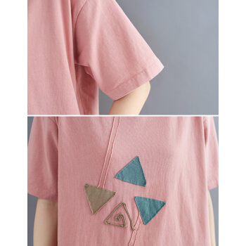 婪澈T恤女女装夏季新款宽松短袖女上衣休闲百搭撞色贴布文艺女t恤衣服女 绿色 请拍正确尺码 |