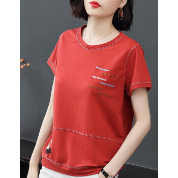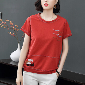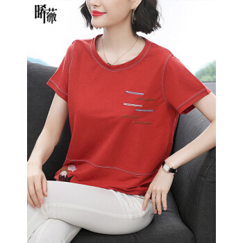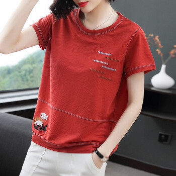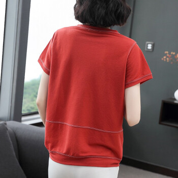 【精选好货】晞薇夏装新款宽松大码女装半袖上衣中年妈妈装红色短袖t恤女夏小衫OL通勤百搭上衣衫 红色 M |