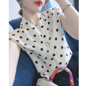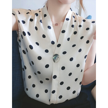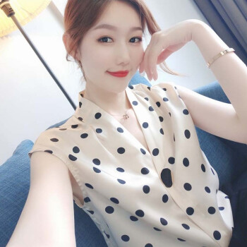 南极人 雪纺短袖t恤女士夏装新品法式波点v领小心机简约遮肚减龄休闲ins百搭上衣体恤 N2-NRB41-7871-波点上衣 M |