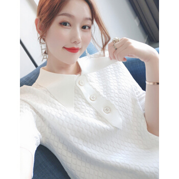 南极人 短袖t恤女夏季新款潮流时尚洋气百搭小香风菱格镂空花纹POLO衫上衣潮 N2-GT131-6660-白色 M |