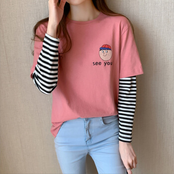 纯棉长袖t恤女春秋新款韩版学生百搭宽松上衣打底衫 7059粉 S 65-70斤 |