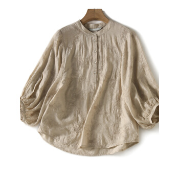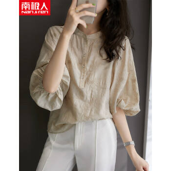 南极人 短袖t恤女士夏季新款圆领宽松绣花遮肚减龄灯笼袖复古简约小衫半袖体恤上衣 N5-GT249-631-杏色 M |