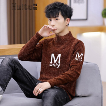 回图秋冬新款半高领毛衣男韩版潮流中领针织衫外套毛衫 深灰色 XL |
